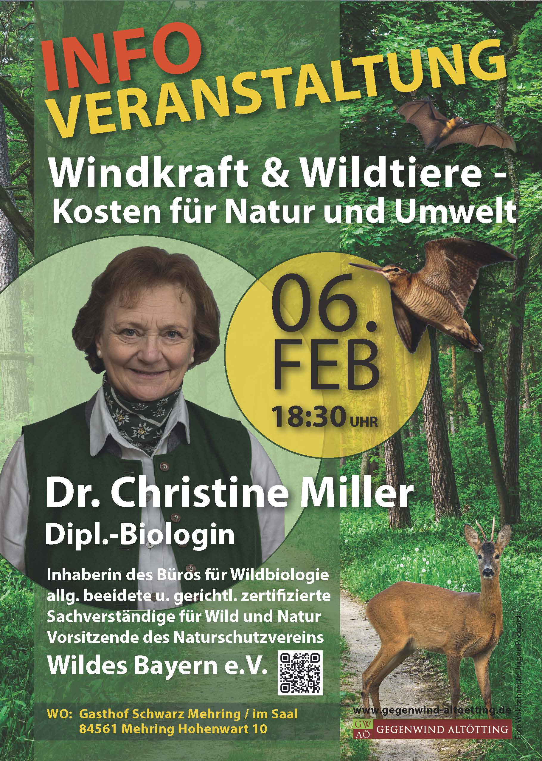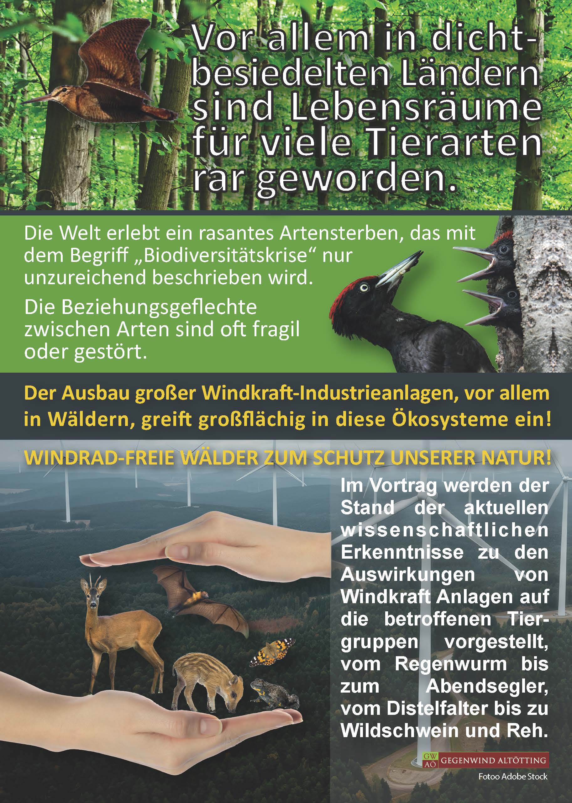 Die BI Gegenwind Altötting lädt alle Bürger und Gemeindevertreter herzlich ein zum Vortrag: Windkraft & Wildtiere -Kosten für Natur und Umwelt